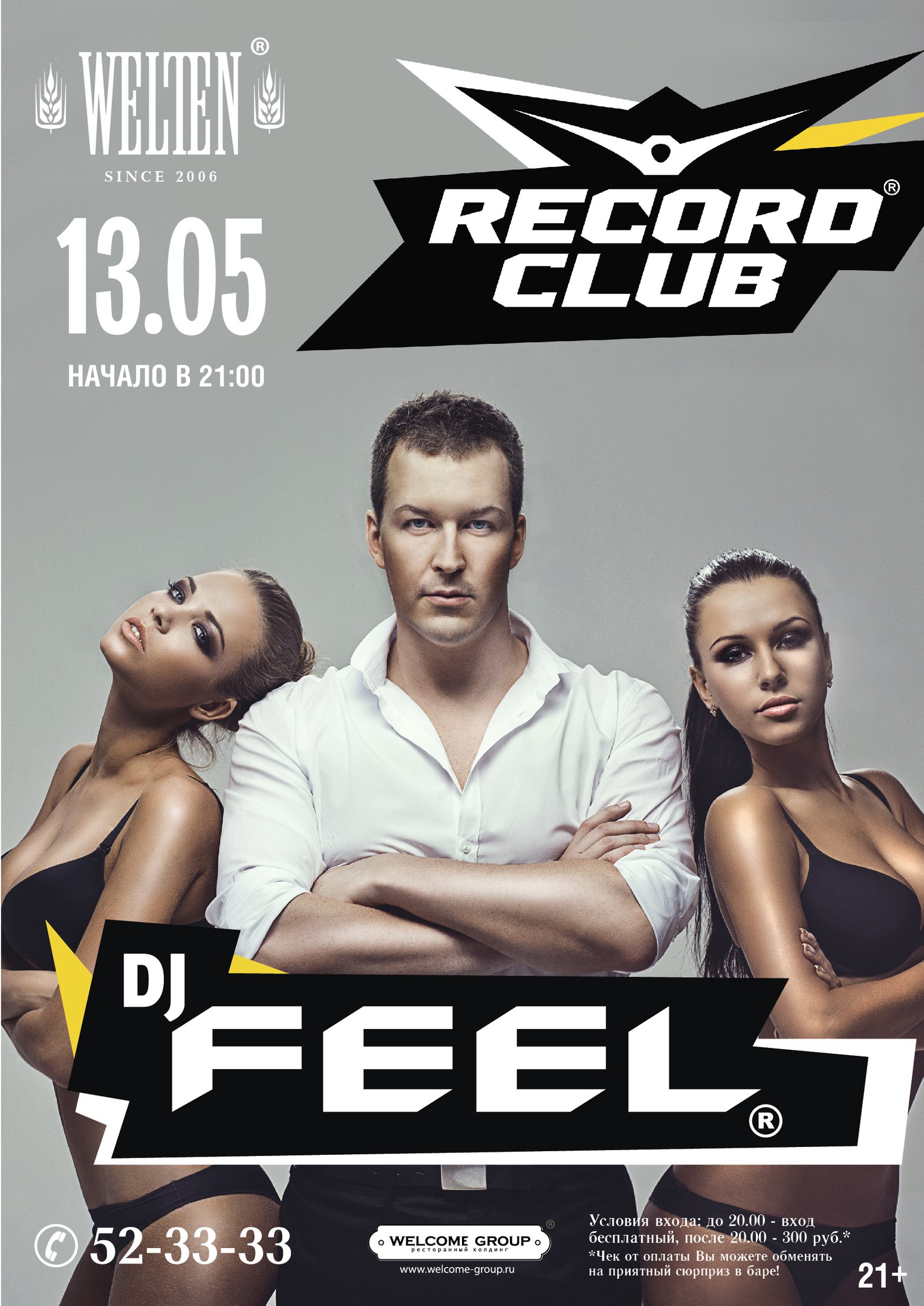 13 мая - Впервые в Ижевск, фирменная вечеринка Радио Рекорд - Record Club! Вести вечеринку и качать танцпол будет один из лучших диджеев России, автор и бессменный ведущий радиошой Трансмиссия - DJ Feel. Дадим старт лету на самой зажигательной вечеринке в Welten! Подробности на официальной встрече мероприятия:
