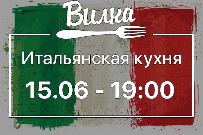МК - Итальянская кухня 19:00 Среда, 15.06.2016 15 июня в кулинарной студии Вилка состоится мастер-класс Итальянской кухни. Мы вас ждём! По всем звонить по телефону 235-003.