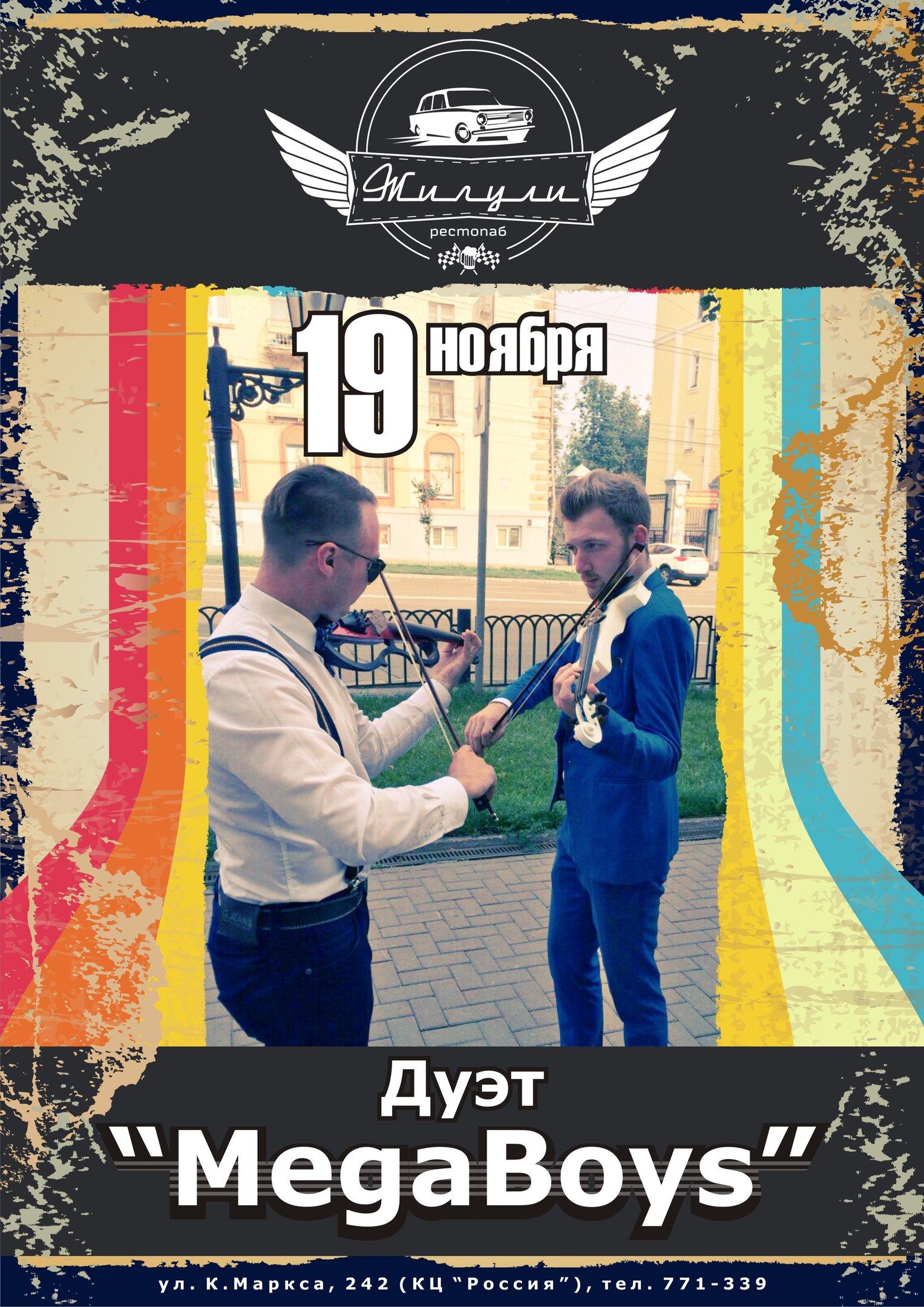 В субботу, 19 ноября, в рестопабе "Жигули" музыкальное настроение обеспечат зажигательный дуэт "Megaboys" и шоу-балет "Sharks". С 23:30 - дискотека. Начало музыкальной программы в 20:30.