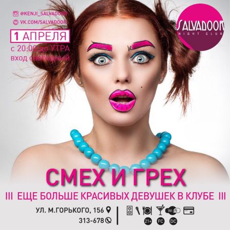 Смех продлевает жизнь: эта истина известна каждому, а вот то, что смех продлевает еще и вечер, знают только гости клуба SALVADOOR. Почувствуем заряд хорошего настроения, рассмешим и погрешим сегодня в клубе SALVADOOR.