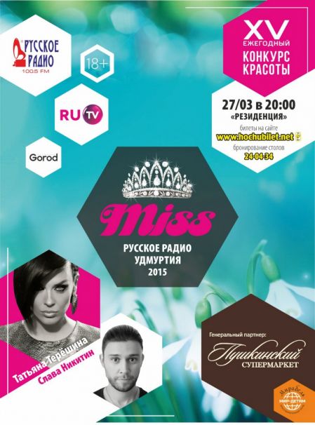 Дождались! Уже сегодня! Ждем в РЕЗИДЕНЦИИ! ПЯТНИЦА 27 МАРТА / МИСС РУССКОЕ РАДИО 2015! Приглашенные звезды - певица ТАНЯ ТЕРЕШИНА и ведущий РУ ТВ СЛАВА НИКИТИН. На сцене клуба выступят 16 финалисток, из которых мы выберем самую достойную носить титул Мисс Русское Радио. Будем рады видеть вас на нашем шоу! Клуб открывается и ждет гостей с 19.00. Конкурс стартует после 20.00. Проведение шоу-программы и конкурса планируется до 00.00 часов. Далее продолжаем отдыхать в клубном режиме до утра. Стандартные условия входа ночью: 500 рублей на карту клуба ИЛИ билет 200 руб. Сумма депозита расходуется гостем при заказе напитков и блюд. С 3.00 действует свободный вход и акции в баре! Информация и бронирование столов: тел. (3412) 24-04-34. FC 18+ БИЛЕТЫ приобретайте в кассах и на сайте ХочуБилет: http://hochubilet.net/miss-russkoe-radio-konkurs-krasoty-gde-kazhdaya-devushka-mozhet-popast-v-skazku Информация и бронирование столов: тел. (3412) 24-04-34 / 43-18-59. Dress Code & Face / Age Control 18+!
