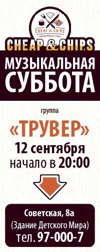 Музыкальная суббота в уютном пабе "Cheap & Chips" на Советской!
